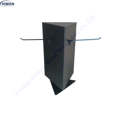 Panneau perforé en métal personnalisé rotatif sur 3 côtés support de comptoir support d'affichage magnétique pour produits suspendus